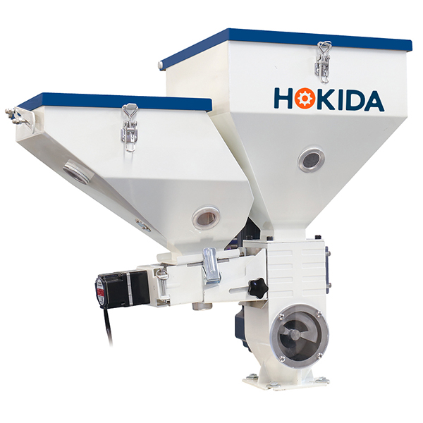 HCM series metering screw doser is suitable for automatic proportioning feeding of materials such as new material, secondary material, colour masterbatch or additive in plastic moulding production. This series models use brushless DC motor. According to the preset ratio and parameters, the microcomputer control system will automatically set the conditions into the speed. The precise metering screw which is made of SUS304 stainless steel, driven by coupling and is used for adding certain amount materials into injection machine or extruder. The material such as masterbatch, degraded material, additives etc, metering error is not more than 1%. With a variety of models and diameter of the metering screw to choose, brushless DC motor can be used with different reduction ratio of high efficiency parallel to the gear reducer, output ranges from 0.1-100 kg/h. In order to meet customer’s needs, two-color, three-color, and four-color mixer are also available.